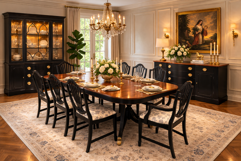 Duncan Phyfe Dining Room Table with George Hepplewhite Chairs