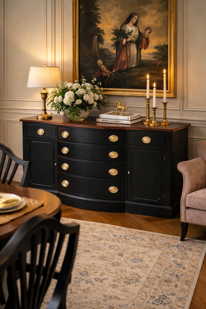 Refinished Solid Wood Stanley Armoire – Matte Black & Gold | Bold, Classic Storage