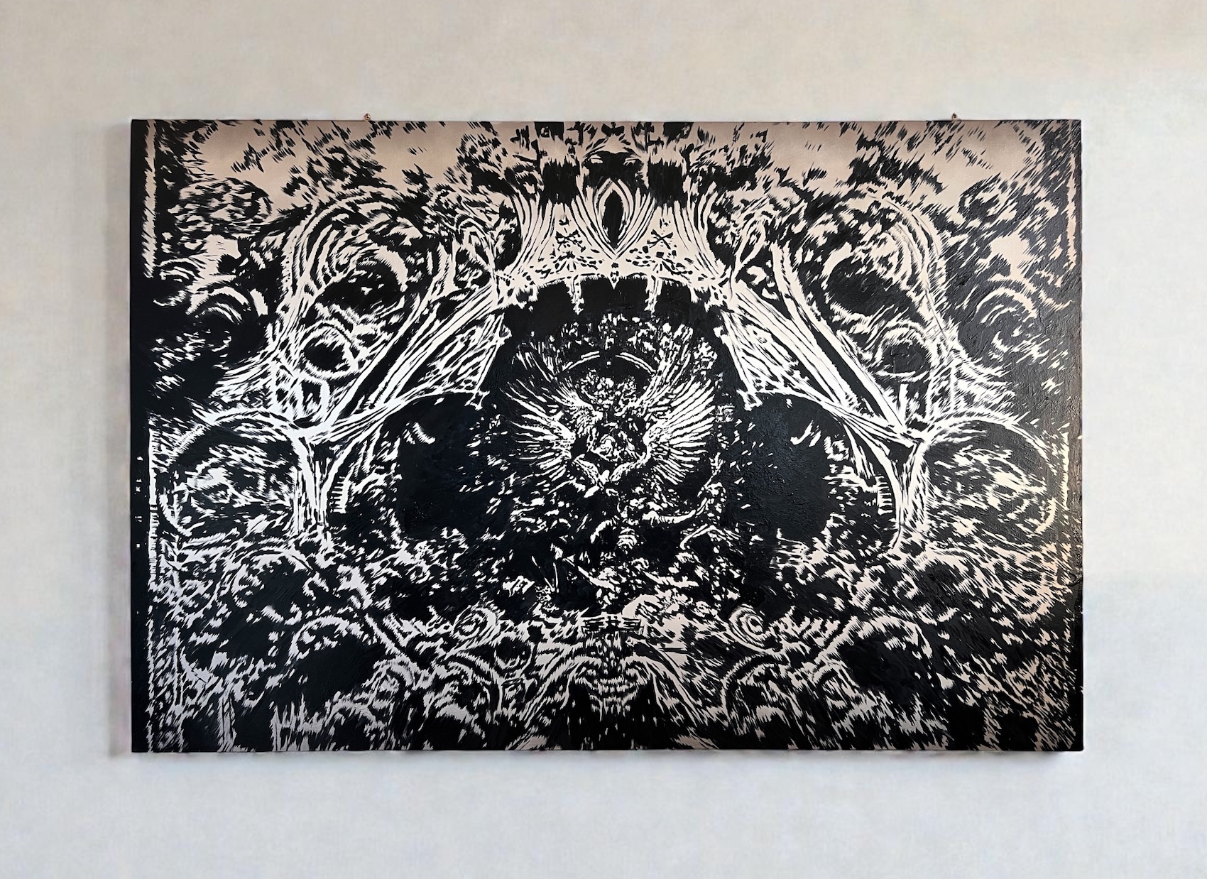 oil and spray paint on panel